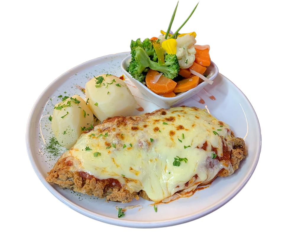 Pollo a la parmesana con vegetales y papá al vapor+ SOPA + JUEGO