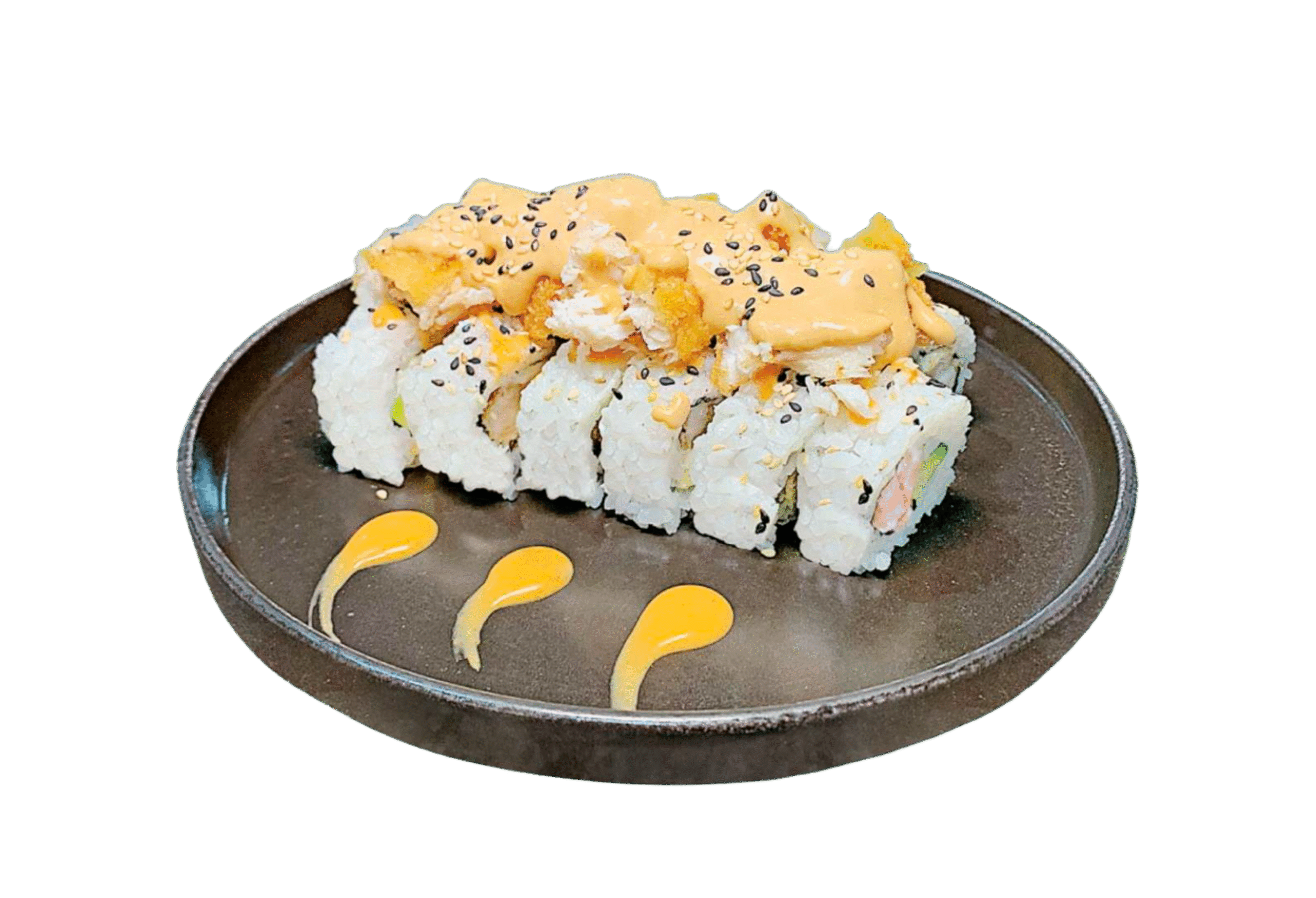ATUN ROJO, VEGETALES TEMPURA, QUESO CREMA, AGUACATE CON TOPPING DE TARTAR DE ATUN